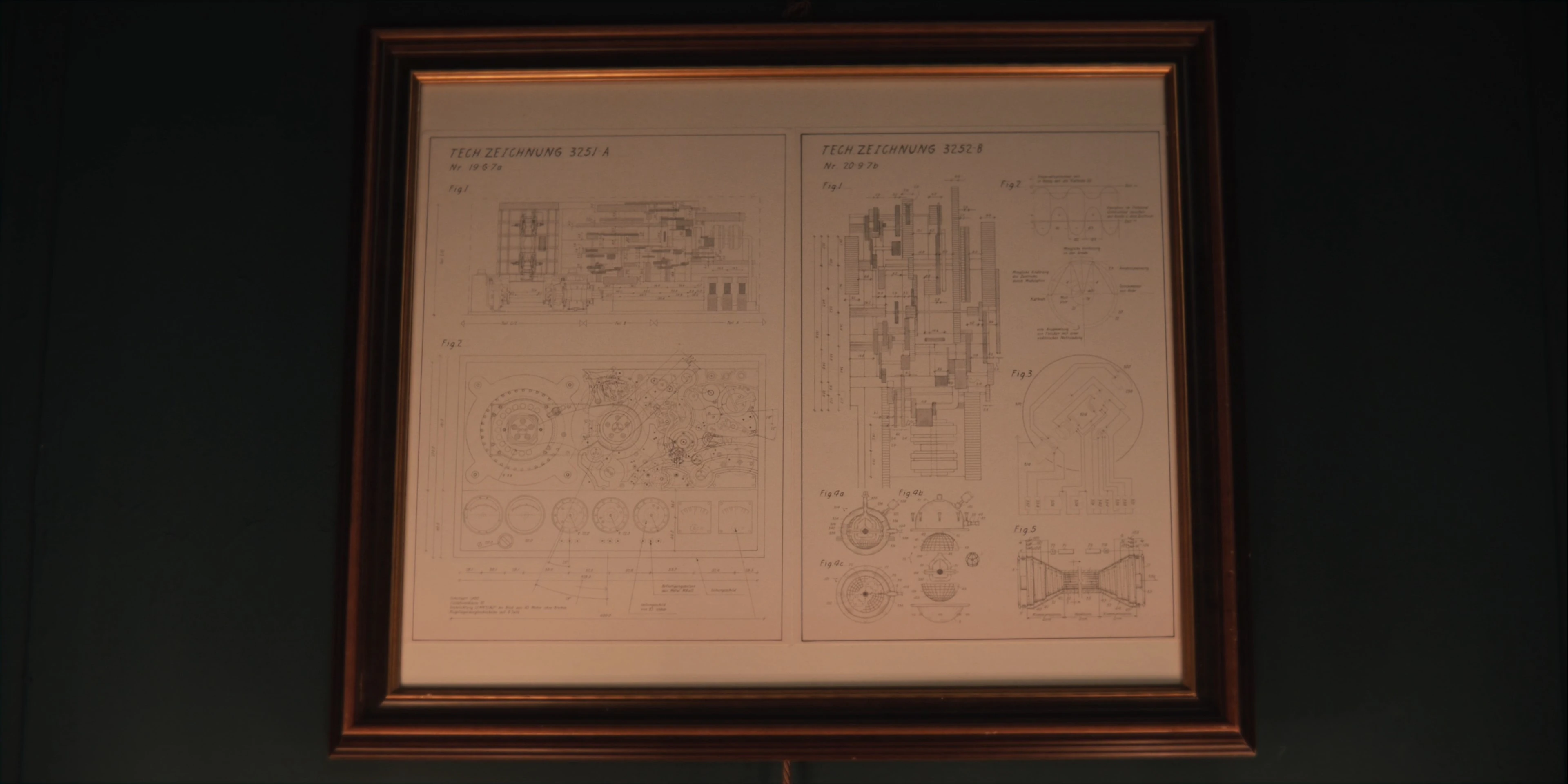 The prints in the Sic Mundus lodge that appear to be for the orb. The plans on the left, marked by 2351-A, are clearly for the portable time machine. The plans on the right, marked by 3252-B, contain aspects that resemble the orb.