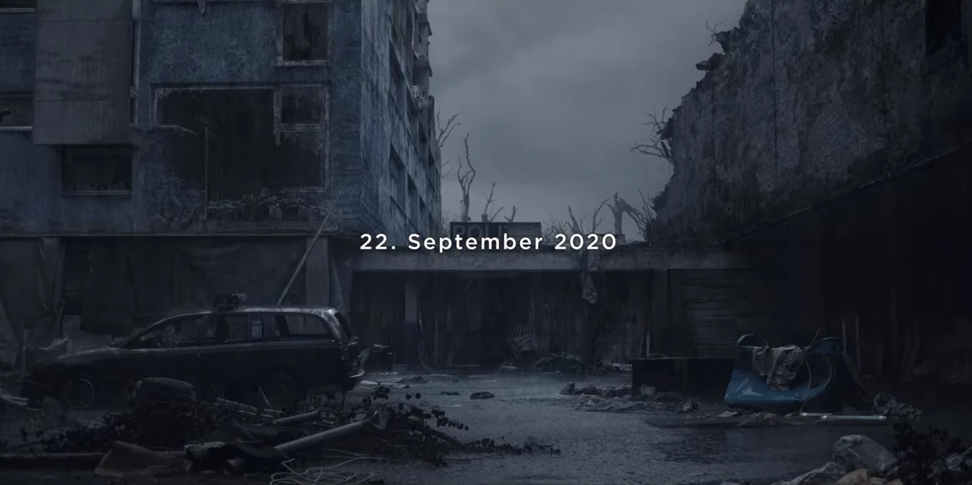 Middle-aged Claudia Tiedemann removes a wooden stick blocking the entrance to the ruins of the police station, as a radio mentions scientists are looking for an explanation for the catastrophe that took place on June 27, 2020, when scientists believe the world stood still for a fraction of a nanosecond. She goes to an ailing Regina, asking how she is. She tells her she will return before the sun goes down.